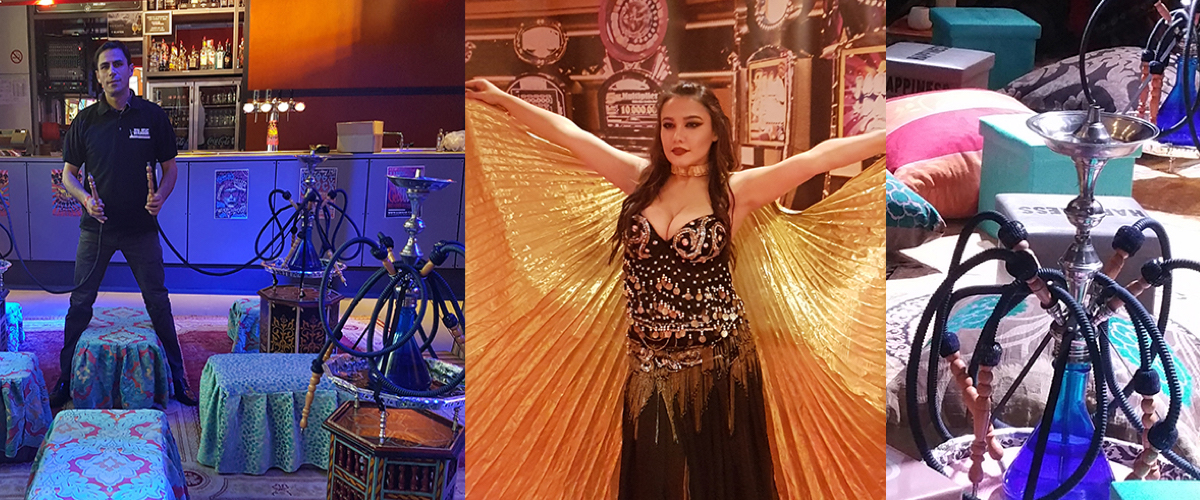 Bent u momenteel op zoek naar een leuk idee voor entertainment op een huwelijksfeest, bedrijfsfeest, enz.? En heeft u interesse om een waterpijpterras in te huren (met “1001 Nacht decor) gedurende enkele uren, kijk dan gerust op onze pagina! Hier vindt u leuke ideeën over muziek, dans, waterpijpterras, enz. E-mail ons voor een offerte, en kijk alvast op onze prijzenpagina zodat u een idee heeft van de eventuele kostprijs. Bent u benieuwd of het roken van een waterpijp iets voor u is?